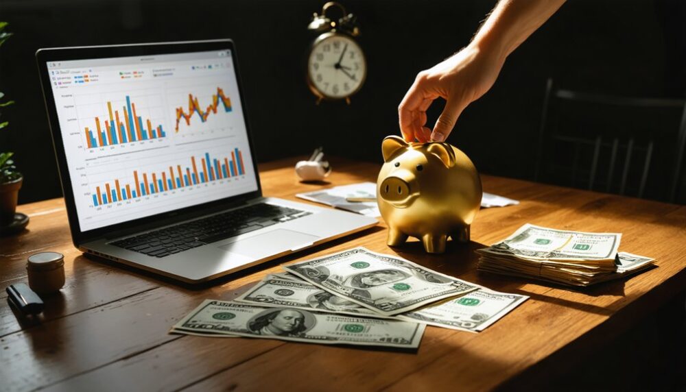 Balancing debt repayment with investment strategies requires a thoughtful approach that accommodates both immediate financial obligations and long-term growth potential. Individuals can leverage the 50/30/20 budgeting structure, directing 20% of their income toward savings and debt repayment, with a split that reflects personal priorities. High-interest debt should be addressed first, adhering to the 6% interest rate threshold strategy, while simultaneously capturing employer retirement matches for ideal wealth creation. As debts are eliminated, gradually reallocating funds to investment accounts promotes financial balance. Consistency is key; automating payments guarantees dedication to both debt and investment goals. Regularly reassessing these strategies allows for continued alignment with developing financial situations, ultimately facilitating secure and sustainable wealth creation. Investing is one of the most powerful ways to build wealth over time, especially when coupled with effective debt management. Moreover, addressing high-interest debt can significantly improve cash flow by reducing the amount allocated to principal and interest charges.